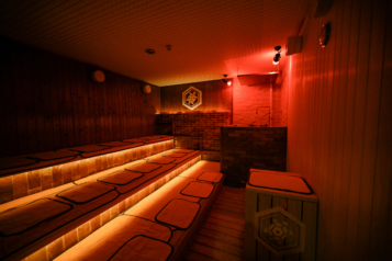 サウナ室は1つですが、約20名ほど収容できる広々とした空間で、約100度くらいの高温です。