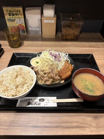 サウナの後のサ飯は1階の「しょうが焼きBaKa」。